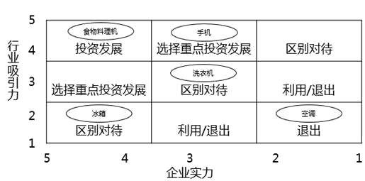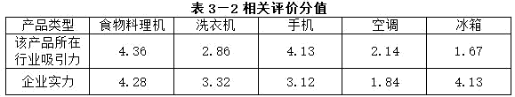 【典型例題】【2018年簡答】A企業(yè)生產(chǎn)經(jīng)營食物料理機(jī)、洗衣機(jī)、手機(jī)、冰箱等產(chǎn)品。咨詢公司運(yùn)用通用矩陣分析,給出的相關(guān)平均分值見表3-2。