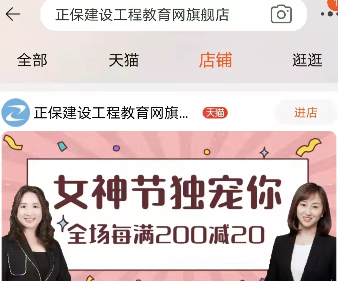 打開手機(jī)淘寶,搜索“正保建設(shè)工程教育網(wǎng)旗艦店”,點(diǎn)擊“進(jìn)店”即可領(lǐng)取多重好禮!