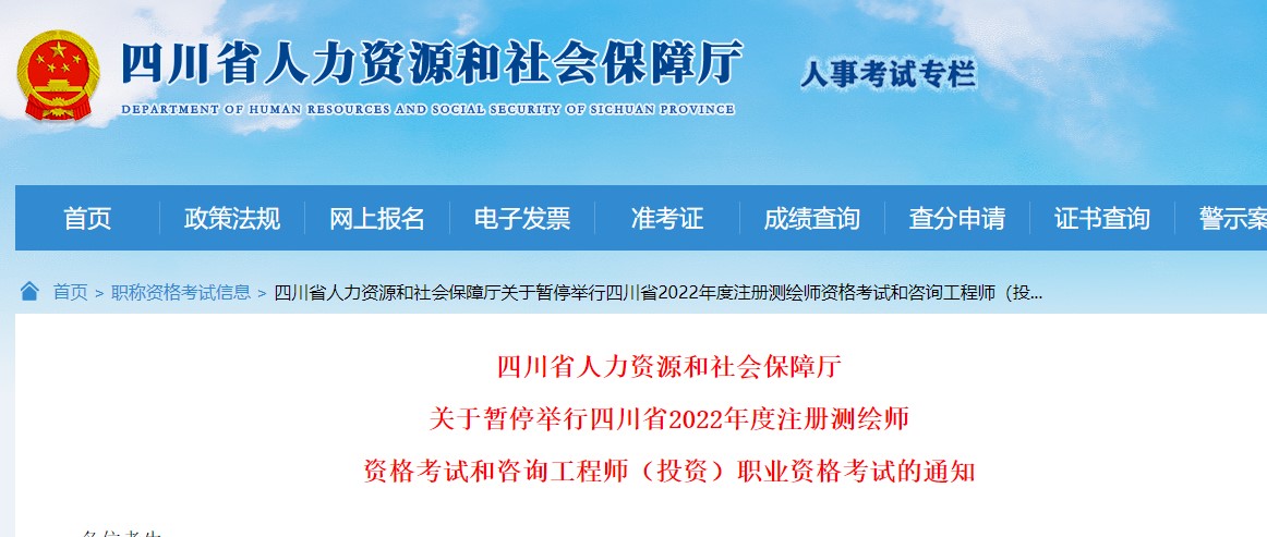 關(guān)于暫停舉行四川省2022年度注冊(cè)測(cè)繪師
