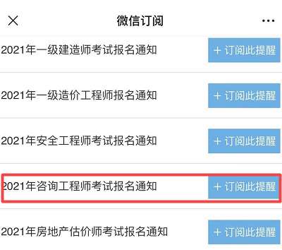 第三步:選擇“2021年咨詢(xún)工程師考試報(bào)名通知”-訂閱此提醒