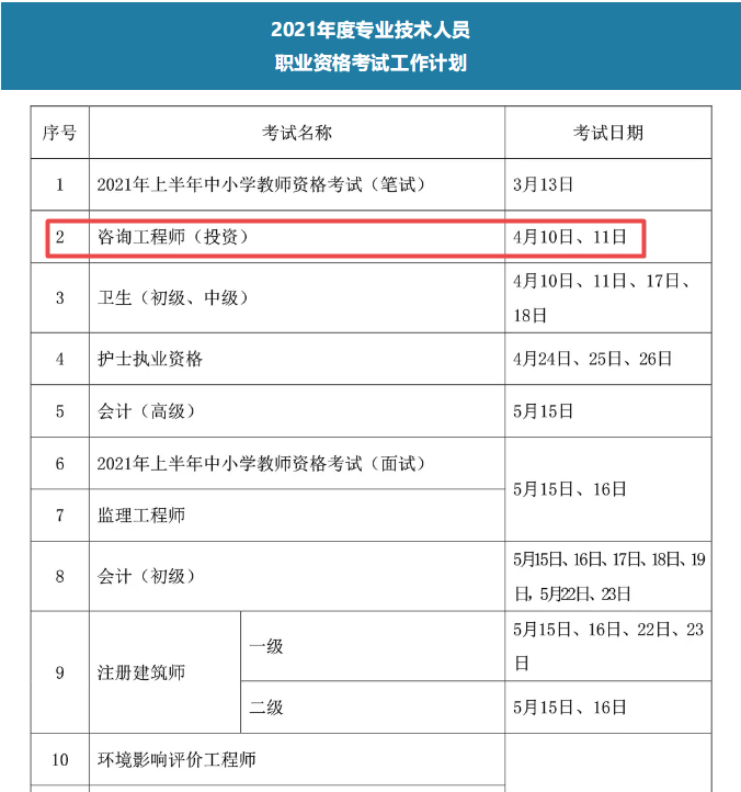 速看!2021年咨詢工程師考試時(shí)間確定為4月10、11日