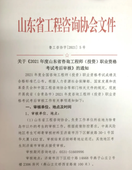 2021年度山東省咨詢工程師(投資)職業(yè)資格考試考后審核的通知