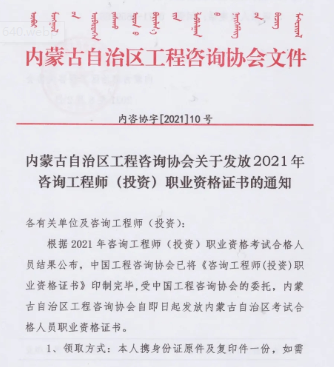 2021年內(nèi)蒙古咨詢工程師資格證書領(lǐng)取
