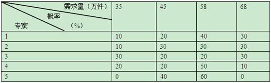 某組織5位專家進行產(chǎn)品需求量預測,預測數(shù)據(jù)見下表。則需求量預測的期望值是()萬件。(2013年試題)