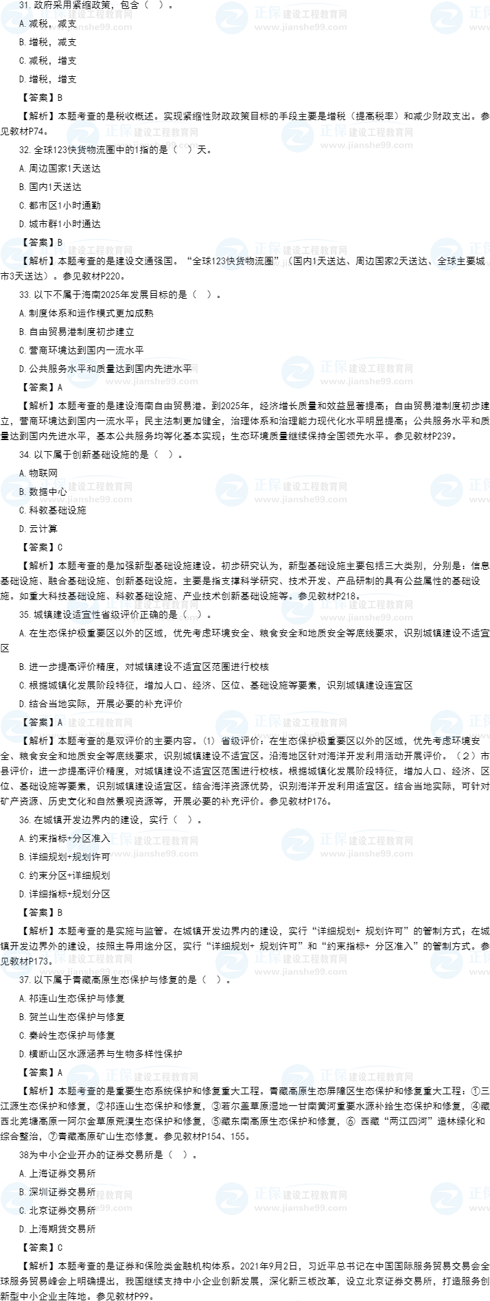 2022年咨詢工程師《宏觀經(jīng)濟政策與發(fā)展規(guī)劃》試題答案31-40題